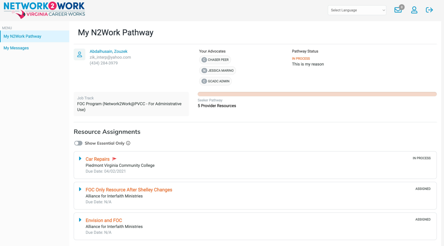The client (Network2Work) wanted a way for a job seeker to view all the resources that were recommended to her, but also to be able to quickly and easily see which of those resources are considered “Essential” so that she could prioritize them.